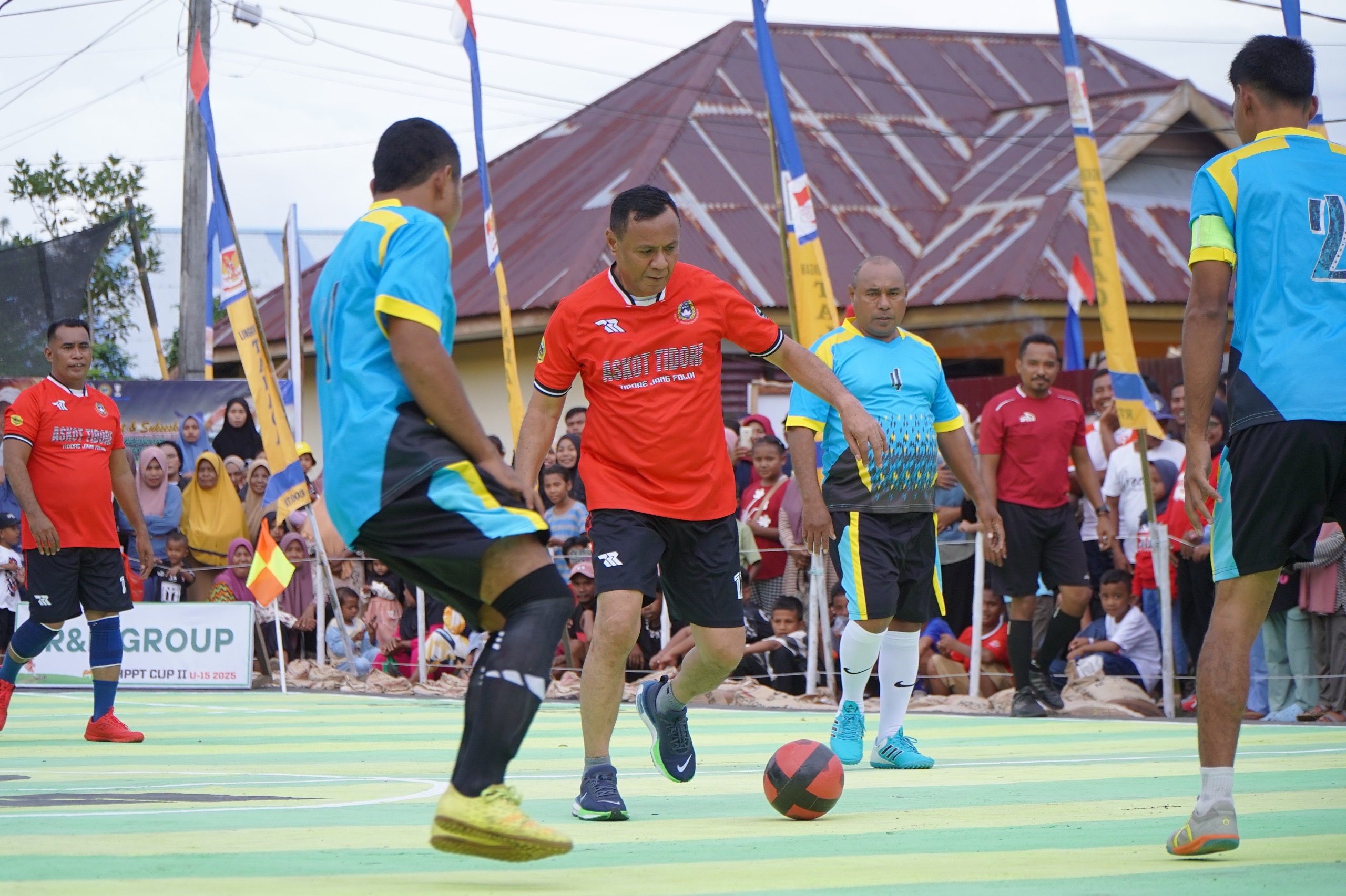 TIDORE – Wali Kota Tidore Kepulauan Muhammad Sinen didampingi Wakil Wali Kota Ahmad Laiman dan Ketua DPRD Tidore Ade Kama membuka turnamen sepak bola gawang sedang Himpunan Pemuda Pelajar Talaga (HPPT) Cup II Usia 15 Tahun 2025.