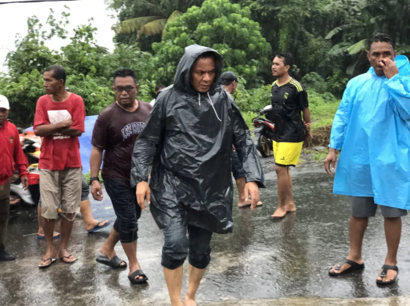 Tembok penahan jalan menuju SPN Polda Maluku Utara dilaporkan roboh akibat derasnya luapan air, merusak badan jalan dan mengancam permukiman warga sekitar.