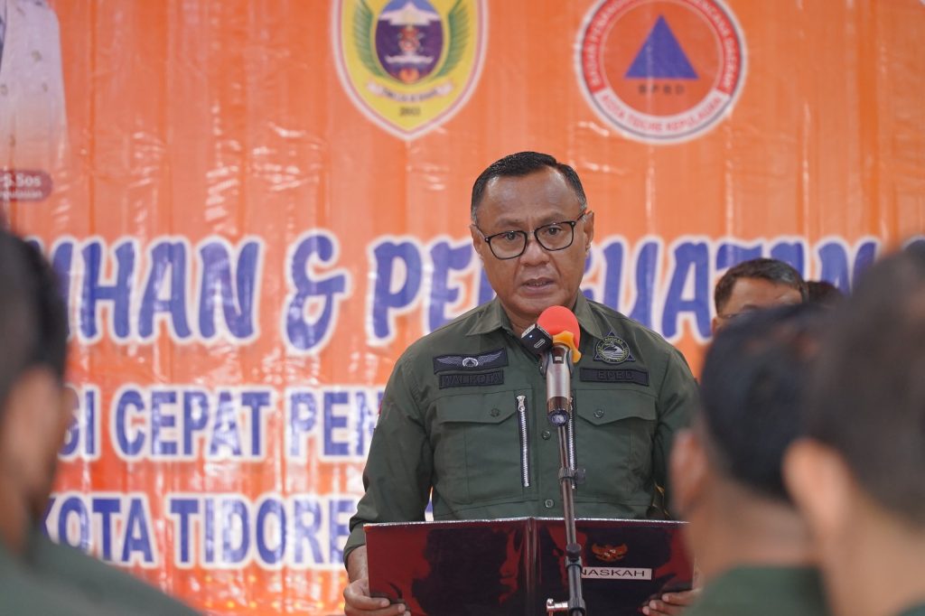 TIDORE – Wali Kota Tidore Kepulauan, Muhammad Sinen, secara resmi mengukuhkan Tim Reaksi Cepat (TRC) dan Tim Kaji Cepat (TKC) Penanggulangan Bencana Kota Tidore Kepulauan Tahun 2025, dalam acara yang digelar di Aula Sultan Nuku Kantor Wali Kota, Rabu (16/7/2025).