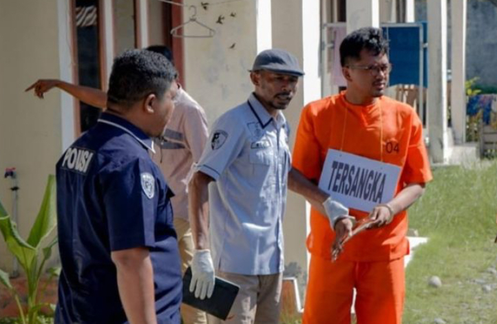 Suasana Rekontruksi di Rumah Dinas BPS Halmahera Timur